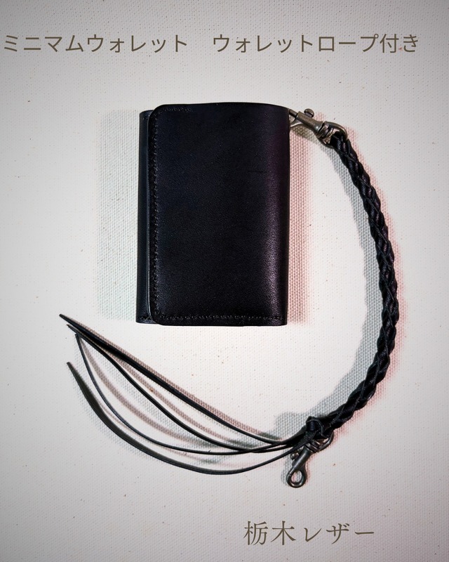 • 栃木レザーミニマムウォレット ウォレットロープ付(black)